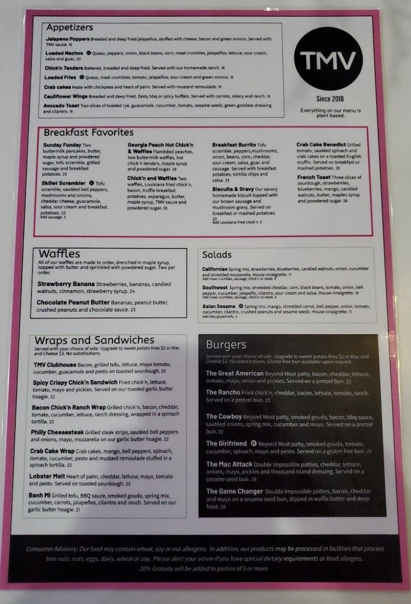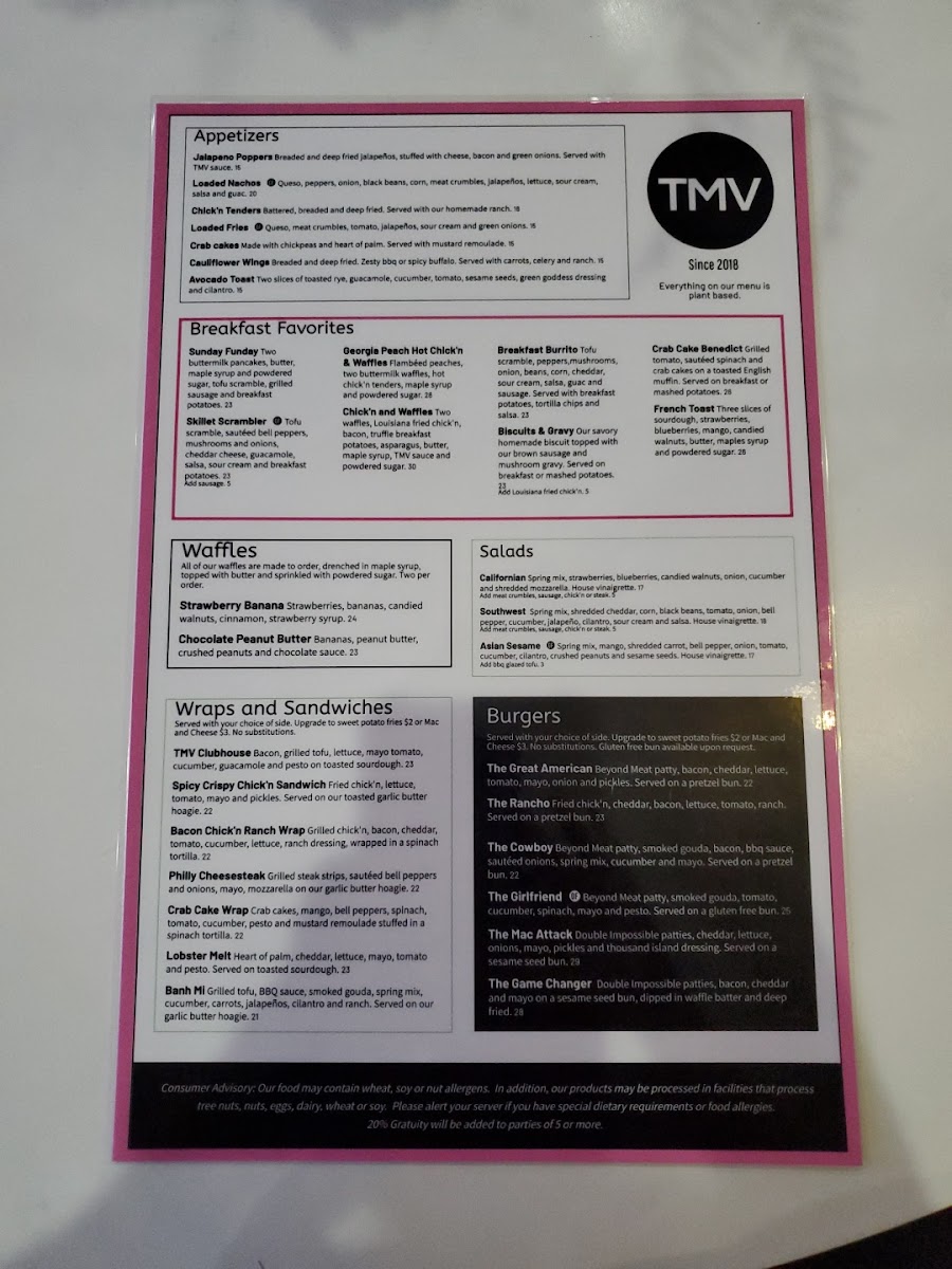 For those who crave a classic, don't miss out on their famous Chick'n Tenders. These bite-sized pieces of perfectly breaded and deep-fried chick'n are crisp on the outside and wonderfully tender on the inside, making for a blissful crunch in every mouthful. If you’re in the mood for a hearty sandwich, the TMV Club is a fan favorite, featuring layers of grilled tofu, crispy vegan bacon, fresh lettuce, creamy mayo, ripe tomatoes, cool cucumbers, and a hint of pesto—all beautifully stacked on toasted sourdough.